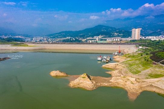 在木鱼岛也可见三峡大坝的宏伟壮阔,与三峡大坝相距仅800米,出口处正对三峡大坝,附近还有一个天空之镜。
