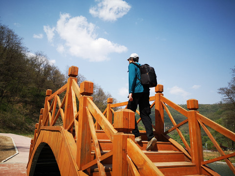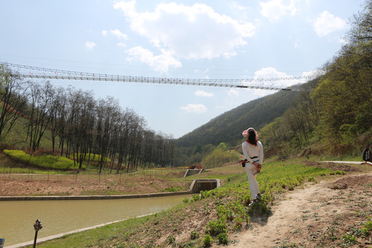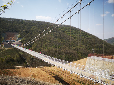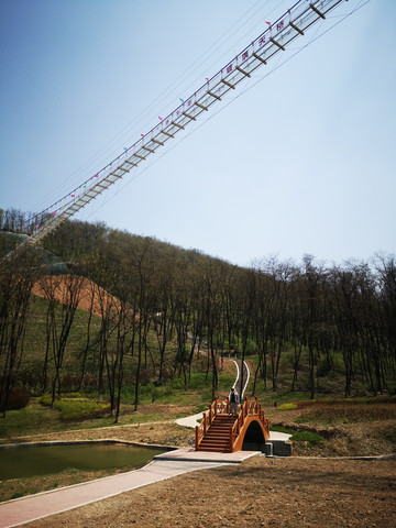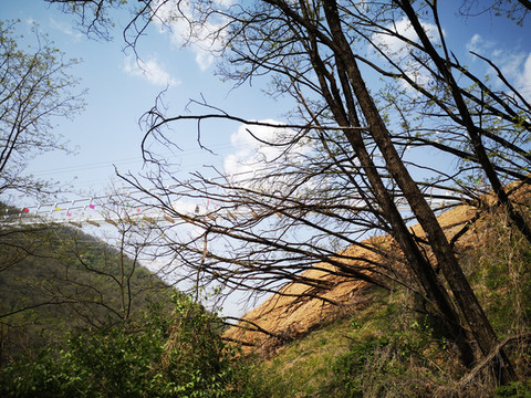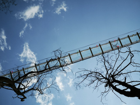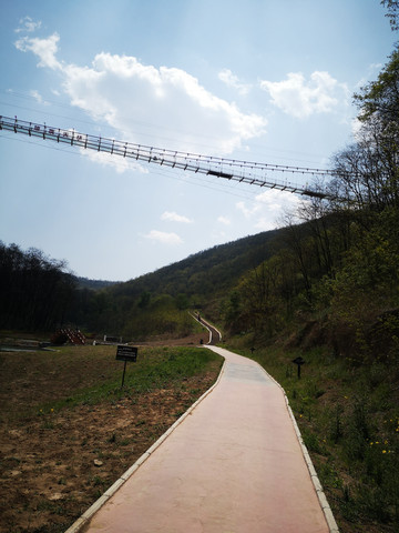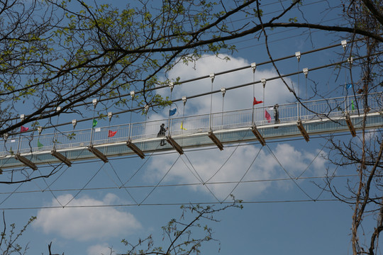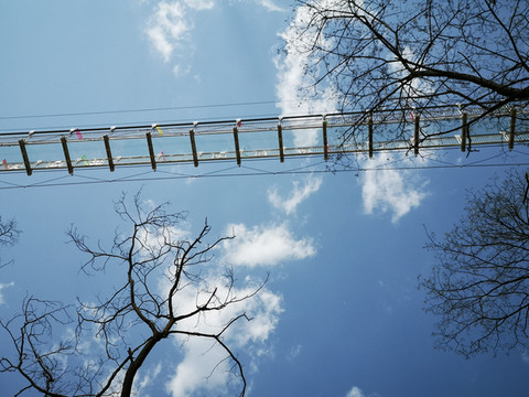 下山路上仰望吊桥