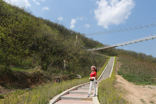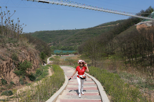 通向玻璃吊桥上山的路