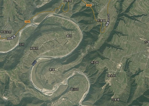 彬州属陇东黄土高原塬梁丘陵沟壑地貌,版图形似正写的“人”字,泾河自西而东斜贯其中,将全县分为南北两塬一道川。从卫星地图上看,泾河水在峡谷间曲折迂回,流经早饭头村、曹村、姚联村和断经村,鬼斧神工般绕了个大大的S湾,造就了一个天造地设的阴阳太极图,千百年来冲刷形成的这处独特地质地貌给两岸豳风山水平添了不少灵韵之美。《诗经.豳风》就是产生于这块古老土地上的不朽诗篇。