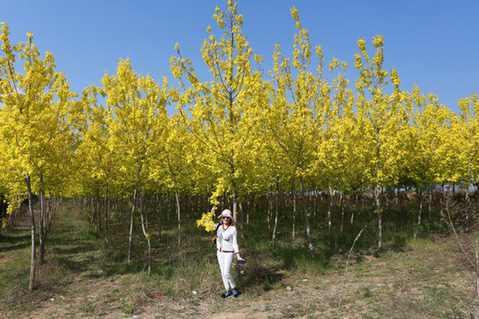 侍郎湖是一泓细长的水域,我们摘下口罩,沿着湖岸漫步,尽情享受这份静美。