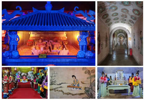 乾陵能看到的景观只有石雕和遗址,东侧不远处的永泰公主墓外有座仿唐乾陵地宫,地宫中有唐宫乐舞、打马球、召见使者、微服私访、墓室等场景,再现了武则天时期的大唐盛世以及乾陵的奢华。