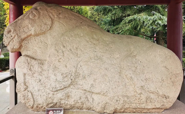 下图为石狮,内城四门外均列置石狮各一对,蹲居石座,前肢挺立,神圣威严,彰显了唐王朝的强盛。