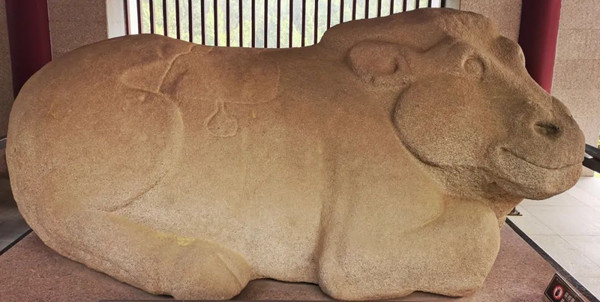 下图为卧牛,回首仰望,神情安详宁静,显示出坚韧耐劳,质朴敦厚的性格,别具一种朴厚强力的美。