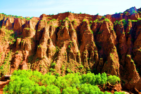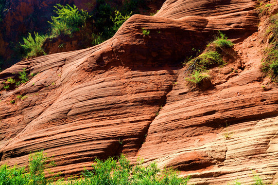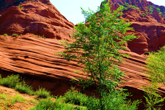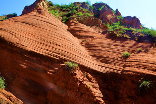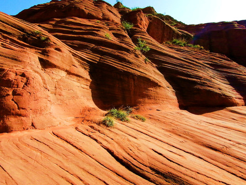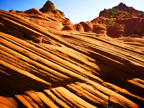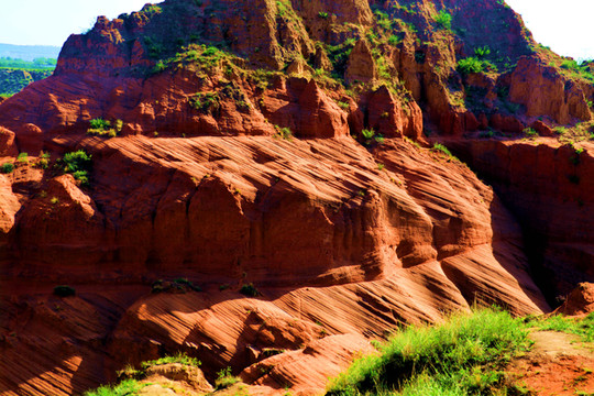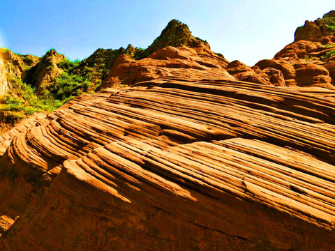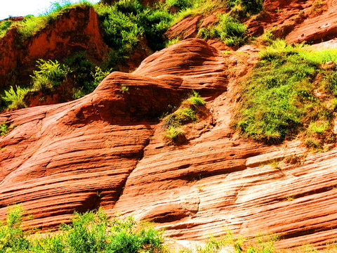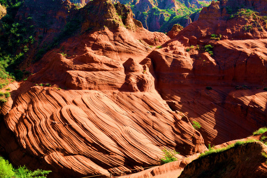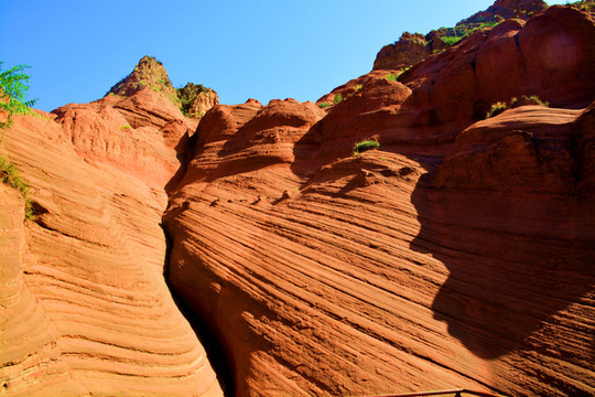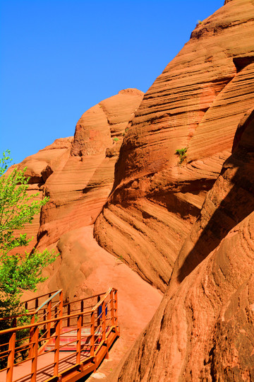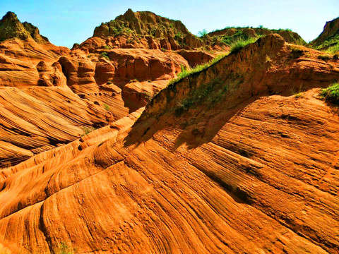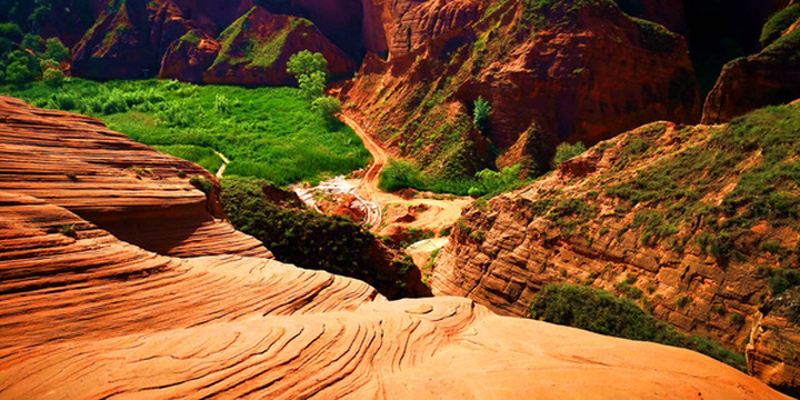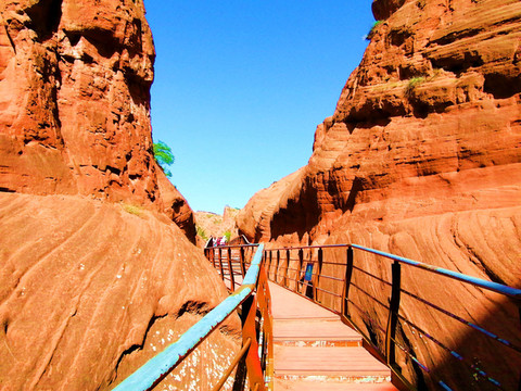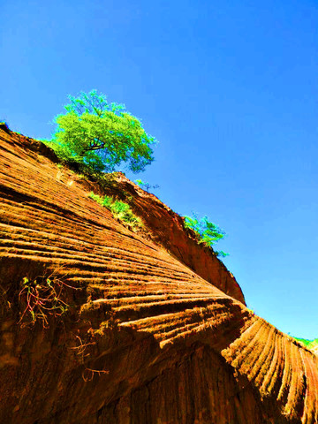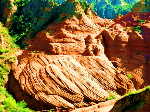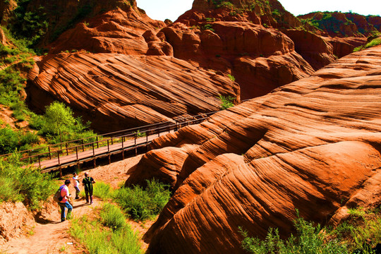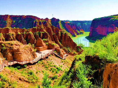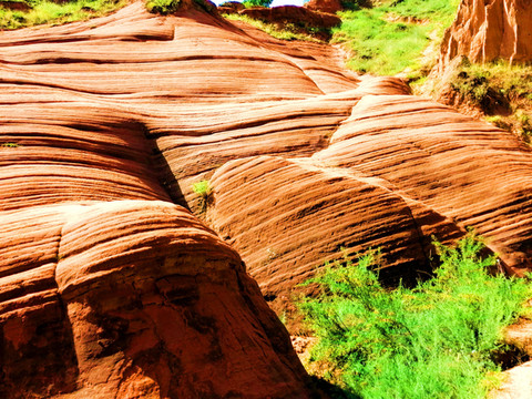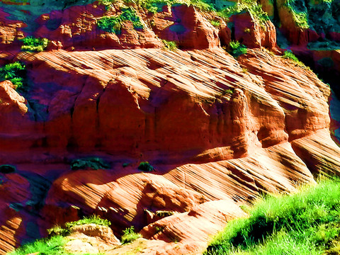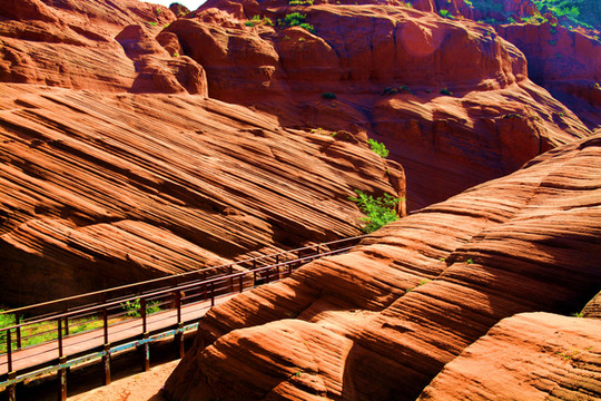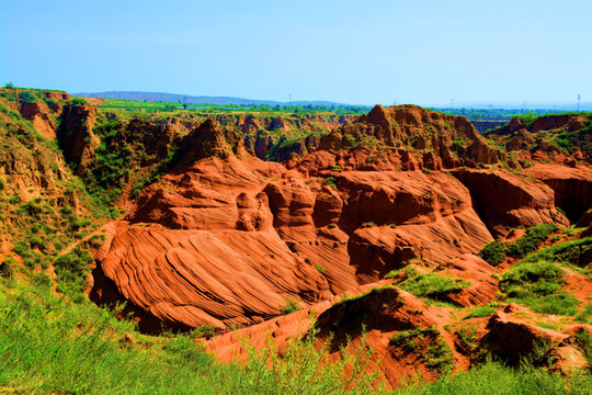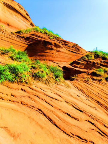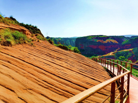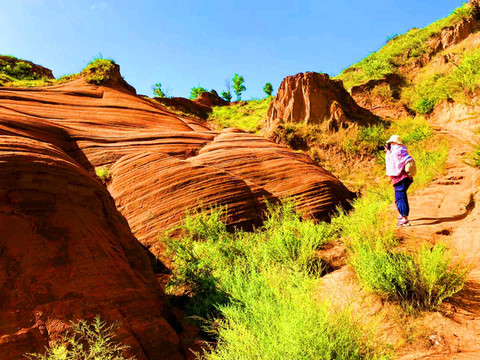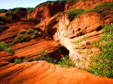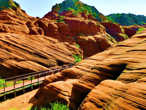 这是目前陕西规模最大的一个丹霞地貌景地,当地人称“波浪谷”、“红石峁”,也叫靖边红沙岩峡谷。