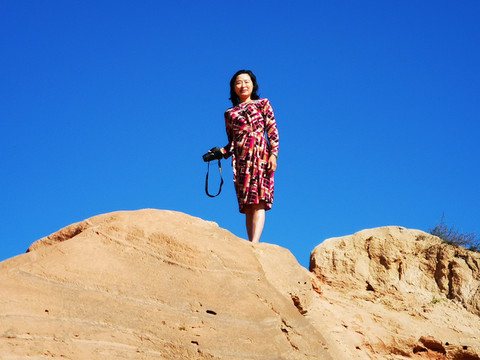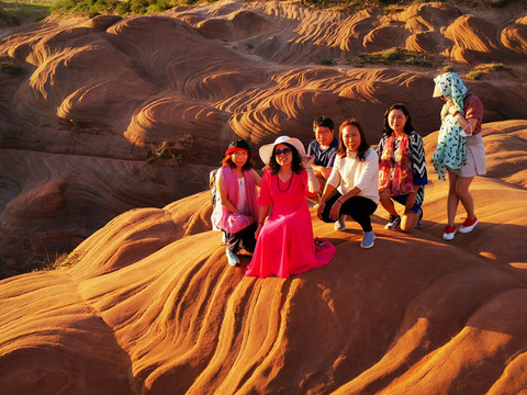我们七人中间有两位大姐都带着专业摄影装备,拍摄起来刹是认真,不忍心落下一粒沙子的美景。