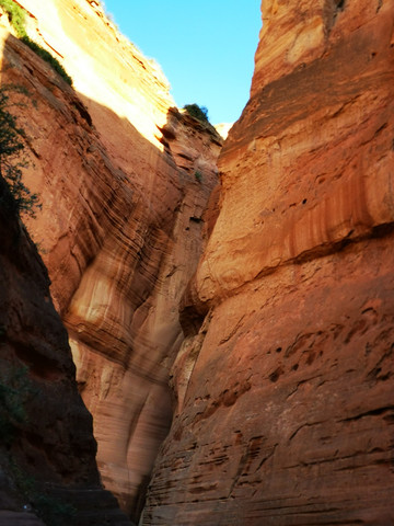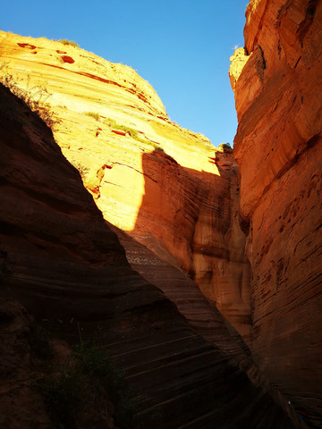 太阳公公羞羞答答到了6点半才露出笑脸,日出观赏到此结束,我们要下到沟底沿着正在修建的旅游栈道向一线天走去。在进入峡谷的地方有一个当地的老太太,在收过路费,每人要5元钱,给她3块也让过,也没有人为此事与她发生争执。