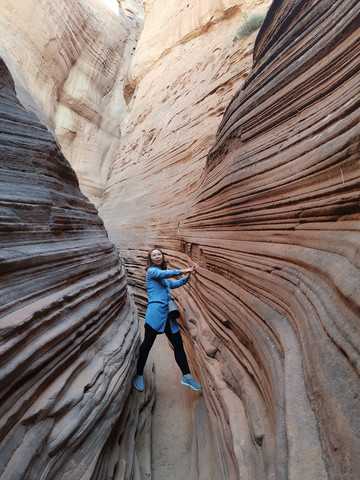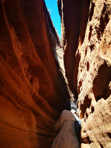 一线天真的是非常狭窄的地方,有的地方仅能一人通行,如果入口不限流,里面真的会发生危险,不知道这样的景点今后如何进行开放和管理,一线天内的层层砂石时而像波涛翻腾,时而像飘起的秀发。