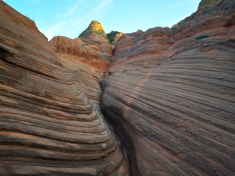 天色逐渐变亮,东方的鱼肚白伴着远方的薄雾出现在远方,五点四十左右太阳公公开始露出金黄的光辉,尽管众人千呼万唤,他还是慢条斯理的不肯露面。天色见明,大地逐渐露出了真面貌,千丘万壑都出现在周边,红色的山谷逐渐显露出来,惊艳的波浪谷徐徐的拉开看神秘的面纱。