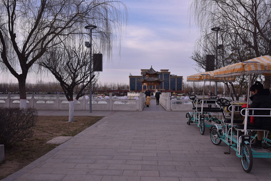 同州沙漠主要就是这些游乐设施,小孩来的话估计比较高兴,我们玩了一个多小时,感觉没啥玩的,就准备到同州湖去了。按照导航直接开车过去,20多公里路程,不到半小时就到了。同州湖在大荔县城正南边,算是一个城市公园,宣传的可以,很多西安人也会专门开车过去。公园主要就是湖水,转一圈要一个多小时,租了一个三人自行车,边骑边转了。