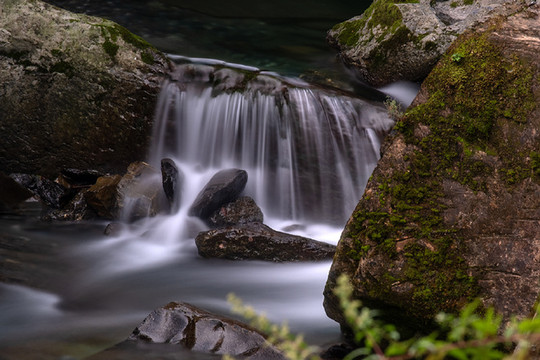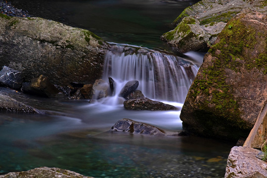 p15 大巴山的地质结构多是页岩,一层层的灰青色石板,使山溪常常从这样的层层叠叠的石板河床上流过。于是又有了美丽的千层河(千层河景区挨着神田草原)和天书峡(平利县)。