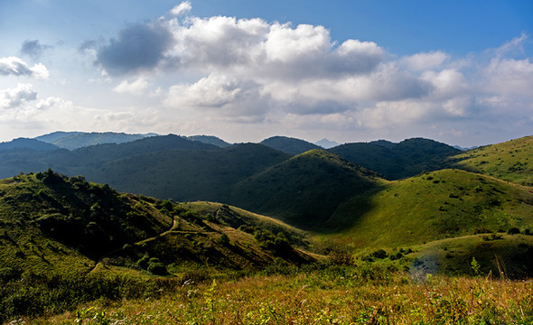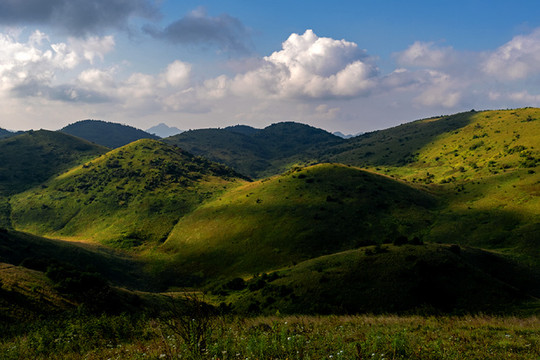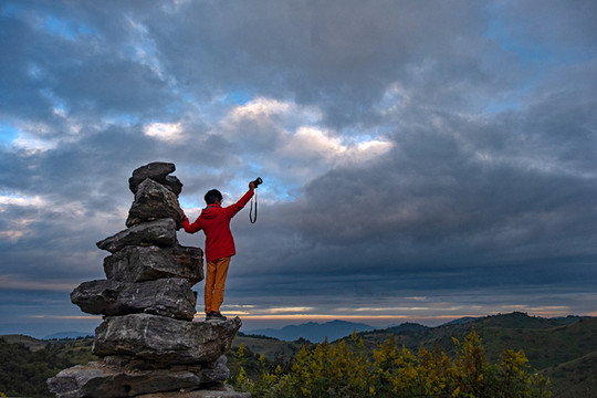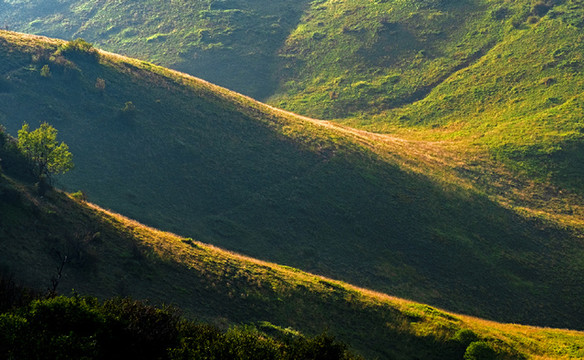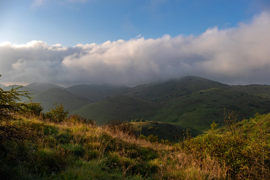 神田草原位于岚皋县最西边,和重庆城口县接壤,神田草原和正阳大草甸应该是一片高山草甸,分属不同的县份。但是草甸风光却不尽相同。正阳大草甸是比较平坦的山顶草原,有一些大的起伏,湿度似乎更大一些,早起晨雾弥漫,晨露湿鞋;而神田草原却是连绵的起伏,方圆视野里都是一个个馒头似的小山包。早晨多云,想着神田日出没戏了,谁知神田草原却让我们融入了一个油画般的美晨......