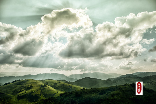 p26 爬上小山包顶,期待夕阳。一片云飘过,神田草原让我们沐浴了一片神奇的耶稣光