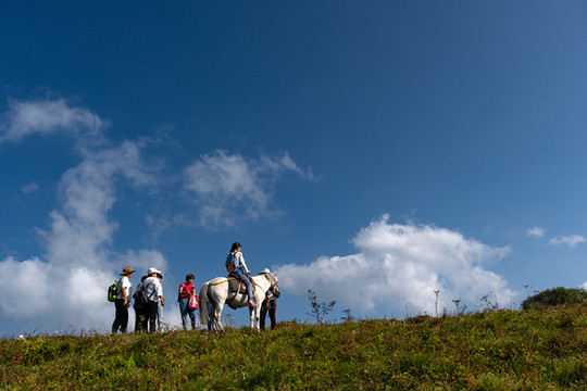 p30 几个年轻的学生在山顶骑着马玩。这里最大的特点是人少。