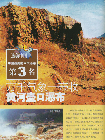 壶口瀑布也被《中国国家地理》杂志“最美中国”特刊评选为国内最美的瀑布之一。