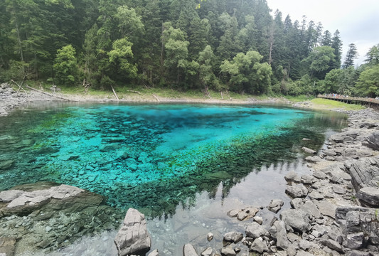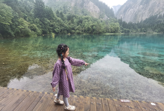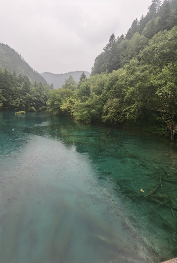 出了森林,上了景区车,雨越下越大,过了箭竹海熊猫海,到达五花海的时候基本就不下了。九寨沟的雨说来就来,出行记得带雨具,不过来的快走的也快,找地方躲一会儿也能过去。