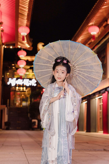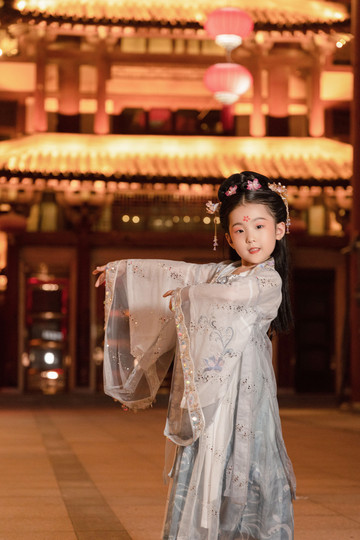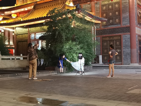 大唐不夜城的夜晚全部被小祖宗占用了。酒店对面就有换汉服的地方。换装做造型1个多小时,找了跟拍,我们只有远远服务的份,终于看到了家庭地位的重要性。