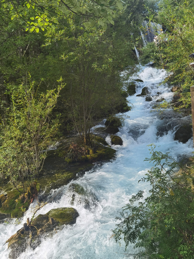 九寨沟整个景区是个Y字,分三段,旅行团进去直接就带人跑到最里头的那一段,我们则选择了从最外面的树正沟开始玩,完美避开了旅游团大军。