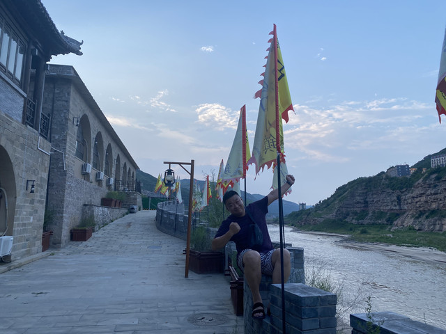 加满油入住壶口瀑布景区旁边假日酒店,壶口瀑布里面有个观瀑坊,据说出了酒店就能看到壶口瀑布,奈何一房难求,只能就近找个条件好点的订了。办好入住,去古渡口转了一圈,回房间摆上酒菜,跟老爹开喝。