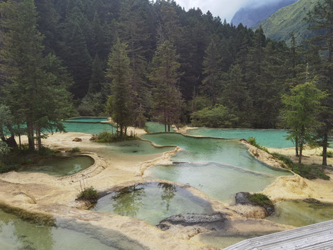 黄龙以彩池、雪山、峡谷、森林“四绝”著称于世,再加上滩流、古寺、民俗称为“七绝”。景区由黄龙沟、丹云峡、牟尼沟、雪宝鼎、雪山梁、红星岩,西沟等景区组成。主要景观集中于长约3.6公里的黄龙沟,沟内遍布碳酸钙华沉积。并呈梯田状排列,以丰富的动植物资源享誉人间,享有“世界奇观”、“人间瑶池”等美誉。1992年列入《世界自然遗产名录》。除了高山景观,还可以在这里发现各种不同的森林生态系统,以及石灰岩构造、瀑布和温泉。这一地区还生存着许多濒临灭绝的动物,包括大熊猫和四川疣鼻金丝猴,这些我都没看到,不过松鼠倒是看到了不少。