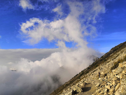 身上穿着毛衣,抓绒三件套的冲锋衣。