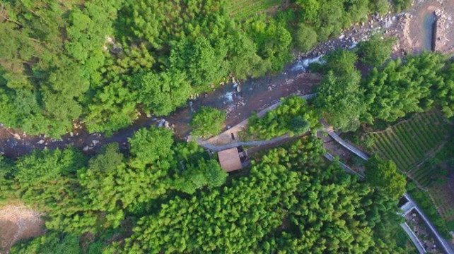 龙上村原名龙藏坞,明《临安县志》 载:“龙潭治北龙藏坞,深百余丈, 周围石圈三丈许,肖龙所穿也,昔人 以龙潭为藏龙所,故称龙藏坞”。村 口龙潭深不见底,口朝上,似龙头一 般,更有“潜龙腾深渊,落石无回声” 的说法,游客均到此留影合照。