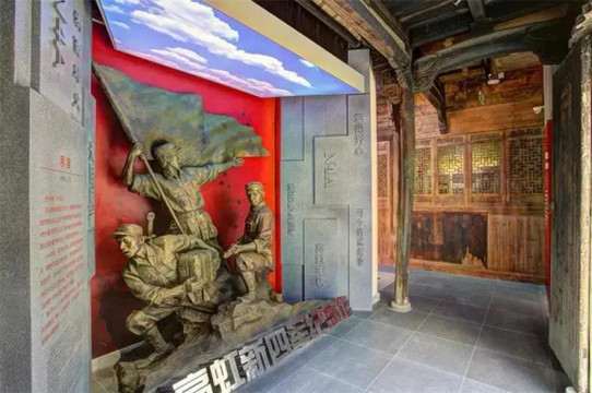 这里是新四军苏浙军区第一纵队第 一支队驻扎地,曾经新四军在这里 开荒种地设立新四军被服厂、司令 部、救护站、军粮仓等,在龙上村 宣传爱国主义精神,号召村民参加 新四军,一起抗日救国,消灭反顽 势力。