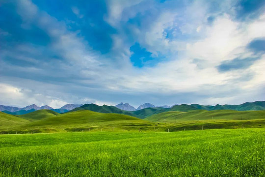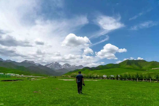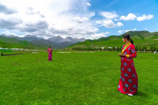 草原的绿,是马牙雪山上扯下的绿绸,是代乾山顶泼开的浓墨,四处渲染,满山满川绽放。这一地的绿啊,是抓喜秀龙最靓的妆梳。
