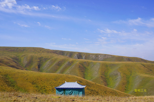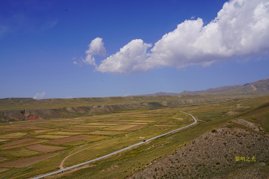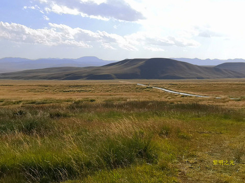 到甘加镇了,刚才我们就是从这里进入甘加秘境的。我们原路返回,然而金黄色的牧草在微风吹拂下,翩翩起舞,草原如窈窕淑女,扭动着腰肢,在夕阳的照射下,不断变换各种舞姿,时时在吸引着我们,爱美的女同胞们怎会错过这眼前美景呢!要求停车拍照的叫喊声此起彼伏,呵呵!这次不得不停下来了,蓝天白云下光鲜亮丽的金色草原再次颠覆了我们的视觉!女同胞们一个个拿出自己心仪的围巾冲向草原,她们欢笑着、嬉闹着,摆着各种姿势,又是一阵近乎疯狂的拍照。草原带给我们别样的欢乐,我们也将笑声和倩影留给了草原、留在了相机、刻在了心上。看,夕阳多灿烂、多温柔、多妩媚啊!再见了甘加秘境!再见了美丽的大草原!