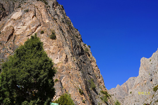 围绕古城还有一条长长的栈道,我们没有去体验,也没有进入古城内,离开八角城古遗址观景台,我们继续沿公路行驶,大概不到十分钟,就到了白石崖寺。寺庙建筑与其他藏族寺庙一样,不同的是它在高耸入云的白石崖下面。我们没有去停车场停车,在路边匆匆拍了几张照片后,就去白石崖溶洞。