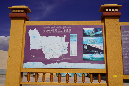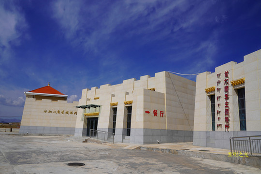 11:40我们离开观景台,沿着曲曲折折的草场公路,穿行在金黄色的草原中,十分的惬意,一边欣赏着蓝宝石一样的海子,一边观看着建筑风格迥异的藏寨,不一会,约半个多小时时辰,到达了甘加秘境景区的入口处,这里已经修建了售票厅、餐厅、陈列馆等建筑设施。好像尚未对外开放,景区全程免费。我们在这里拍了几张照片后,进入景区。