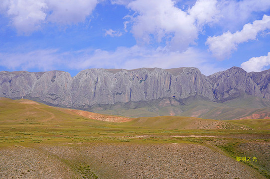 东面不远处是一字排开的、延绵的巨大峭壁,山体很高,像一把把钢刀插在大地上,在阳光照射下,熠熠生辉,炫目而壮观,让人震撼,这就是“白石崖”,它宛如一道天造屏障,世世代代守卫着美丽的甘加大草原。