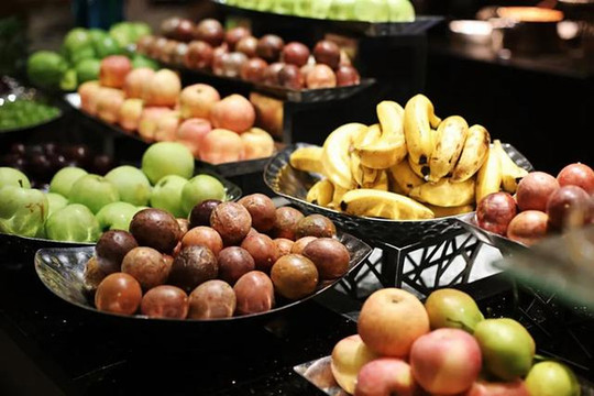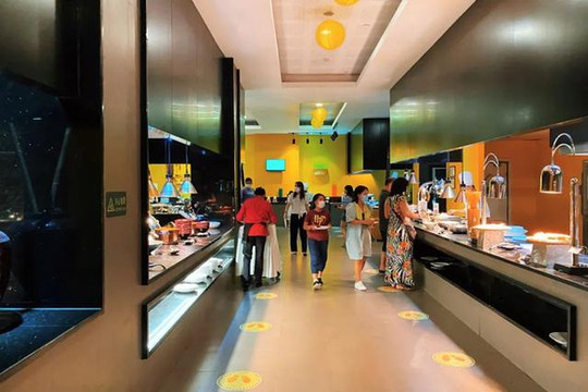 夜晚,你可以选择自助餐厅,这里有来自世界各地的美食。
