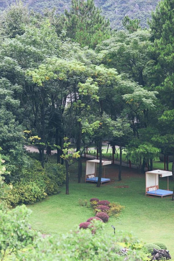 因为度假村太大,各个建筑之间有这样穿梭的电瓶车。整个Club Med 桂林度假村,第一眼的感觉,是满满的绿色。
