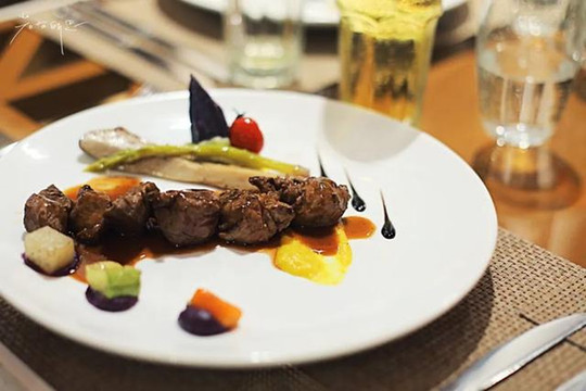 自选二道前菜,一道主菜,一道甜品。鲜花,音乐,红酒...仪式感满满。
