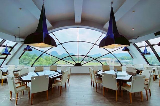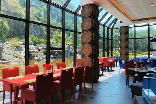 蒙古特色餐厅很有特色,宽敞明亮,玻璃窗外的景色也很美。