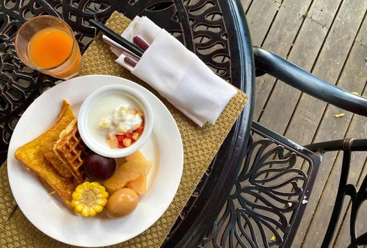 早晨可以睡到自然醒,在池塘边吃一个丰盛的自助早餐。