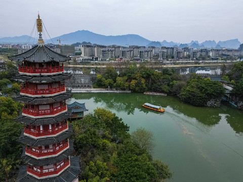 桂林 “两江四湖”指漓江、桃花江、木龙湖、桂湖、榕湖、杉湖,其环城水系全长7.33公里,是构成 桂林山水美景的重要组成部分。