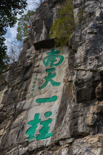 独秀峰是 桂林 市的标志之一,素有“南天一柱”的美誉,史称 桂林 第一峰。山峰突兀而起,形如刀削斧砍,周围众山环绕,孤峰傲立,有如帝王之尊。