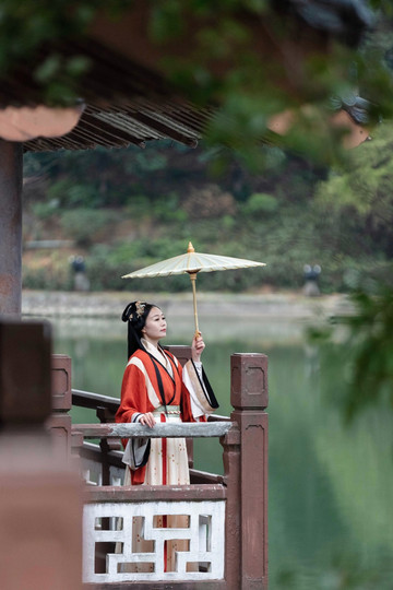 木龙湖很适合穿古装来拍照,游客不多的午后,走走停停,在不经意的角落,总有偶遇的惊喜与感动。