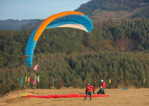 在天气晴朗的情况下,只需助跑一小段,就能腾空而起,欣赏到壮美的 桂林 山水。我们抵达的时候是下午,风向不错,教练正带着客人从山顶起飞。