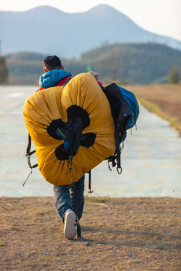 教练们带着游客从200多米的山顶起飞,十几分钟后落地。眼看着快日落了,200多米的高度不太适合了,决定带我们前往400多米的起飞点。
