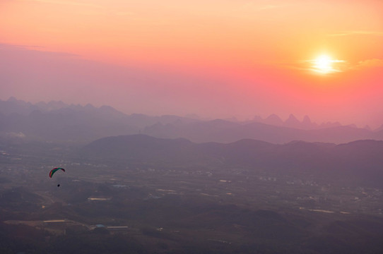 桂林 也能玩滑翔伞?没错,在离 灵川 县 大圩 古镇不远的大埠村,有一处展翼航空飞行营地,这里风向稳定,视野开阔,是滑翔爱好者们的天堂。
