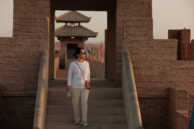 日落之时登上城墙,晚霞映照下的阳关。