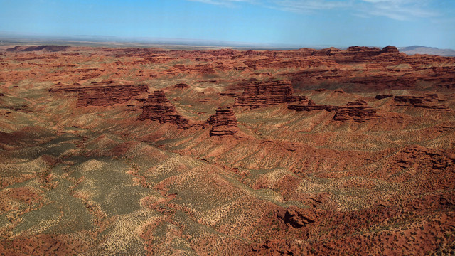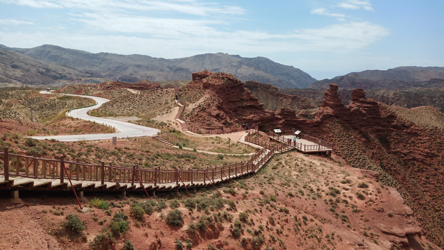 山顶观景台,满眼都是红褐色的砂砾岩,片片层叠成各种造型的山体,非常壮观。