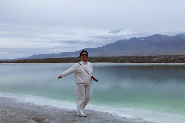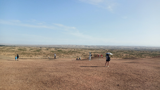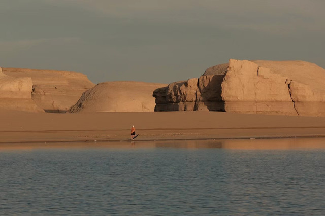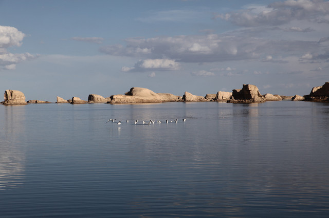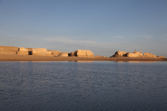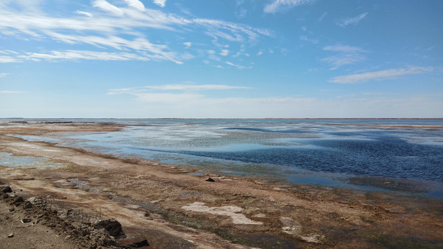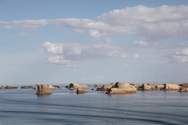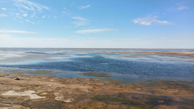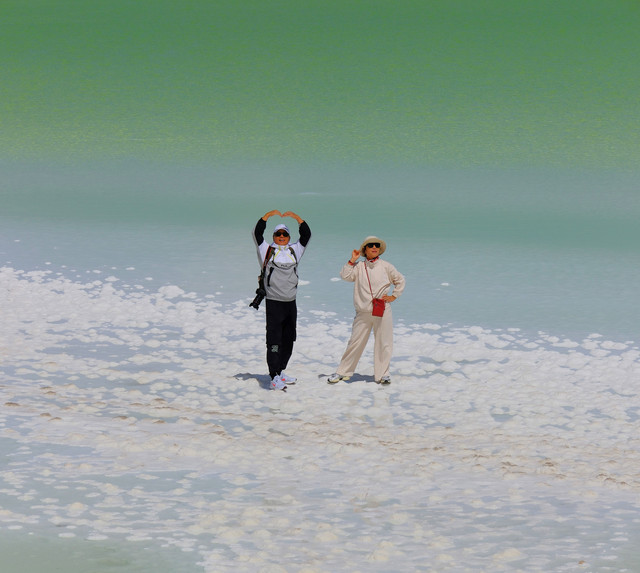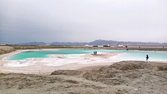 湖边露出一圈银白色的盐质结晶体,像给池子戴上了一个美丽的项圈。盐湖很大,中午时分离开有些恋恋不舍,安排一天在景区里会有更多的收获。