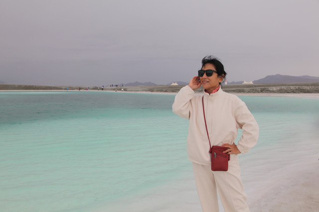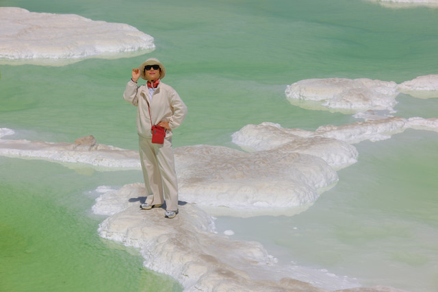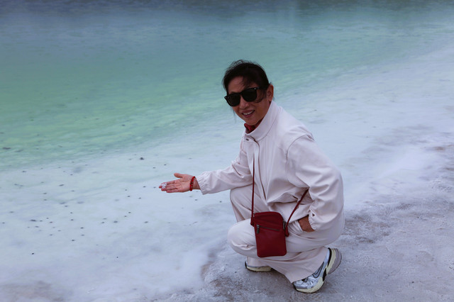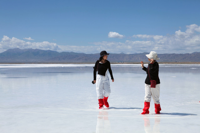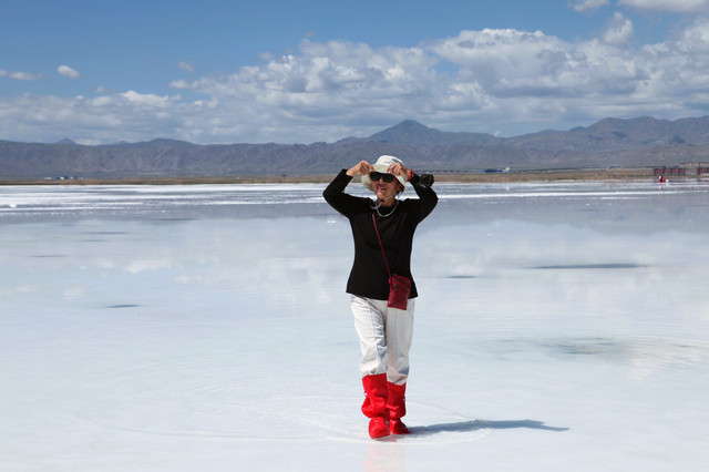 乘观光小火车出入,满眼都是白茫茫一片,可租用塑料高筒靴进入,在结晶盐上踱步或奔跑也是人生第一次。盐湖有大小不同的盐坑,要注意安全。