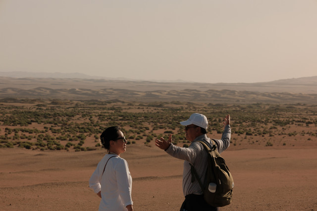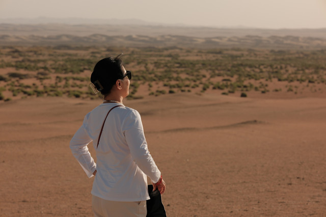 太阳下山,感叹大西北无边的沙漠魅力。