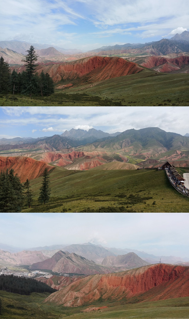 D13(8/22)卓尔山位于青海省祁连县八宝镇,属于丹霞地貌,由红色砂岩砾岩组成。一早沿着栈道来到卓尔山,站在山顶视野极其开阔,四周没有任何遮拦,连绵起伏的祁连山,处处美景,宛如仙境,令人心旷神怡。