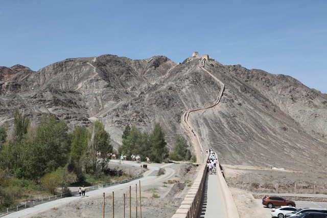 悬臂长城距离关城约7公里,是嘉峪关关城的北向延伸部分,是古代军事防御体系的重要组成部分,始建于明嘉靖十八年 (1539年) ,是万里长城注入嘉峪关时的最后一条长城,被誉作万里长城的尽头。悬壁长城需要2小时以内的攀爬才能登顶。